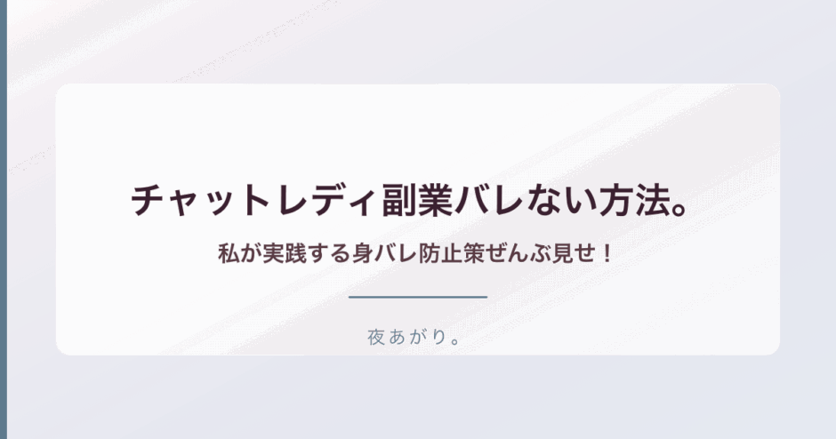 あの時、夜職を辞めて在宅チャットレディに移行したばかりの頃、一番不安だったのは「誰かにバレたらどうしよう」ってことだったな。会社の人とか、友達とか、まさか家族にまで知られたらって考えただけで、胃がキリキリしたのを今でも覚えてる。でもさ、生活もあるし、まとまったお金を稼ぎたいって気持ちも強かったんだよね。だから私は、絶対にバレないための方法を必死で調べて、自分なりに工夫して実践してきたんだ。今日は、そんな私が本当にやってる身バレ防止の具体策を、隠さず全部話すね。