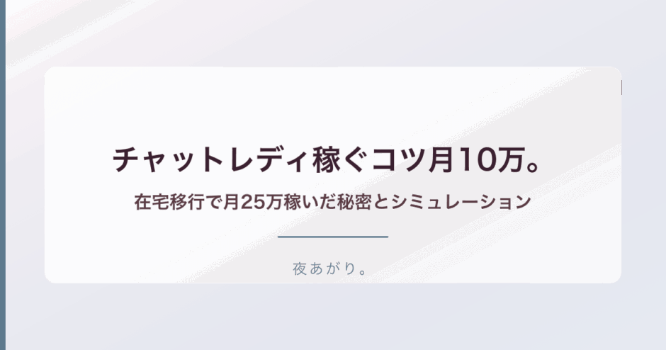 A. 私の場合、本格的にチャットレディに力を入れ始めてから、2ヶ月くらいで月10万円は達成できたかな。最初は手探りだったけど、積極的に男性に話しかけたり、リピーターさんを大事にしたりするうちに、少しずつ安定してきたんだよね。夜職の経験があったから、男性とのコミュニケーションには自信があったし、それが早く成果につながった要因だと思う。もし夜職経験があるなら、もっと早く目標達成できる可能性も十分あると思うよ。