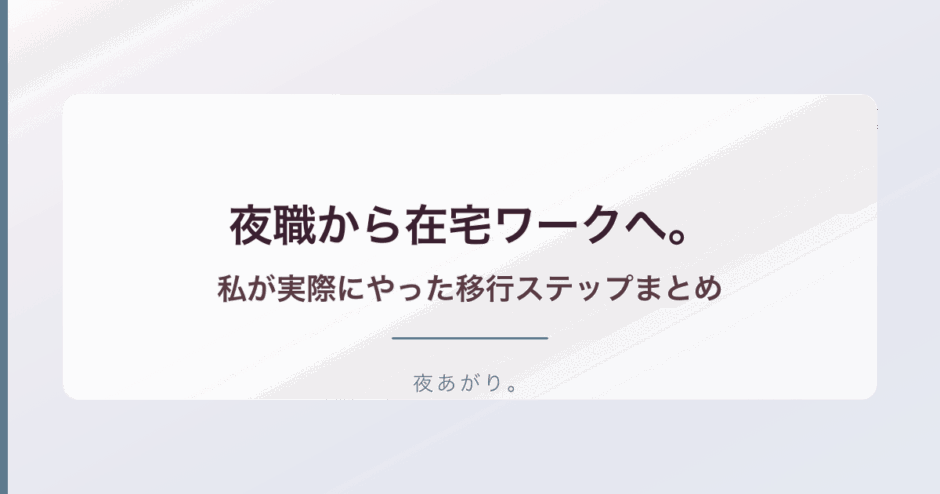 だから、この経験を全部、この記事に詰め込んだよ。私が夜職から在宅ワークに移行するまでに経験したこと、困ったこと、どうやって解決したか。全部正直に話すね。これを読めば、あなたの疑問も不安も、きっと全部解決できるはず!