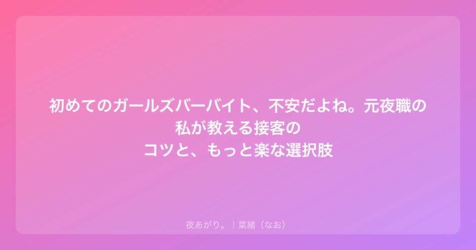 初めてのガールズバーバイト、不安だよね。元夜職の私が教える接客のコツと、もっと楽な選択肢