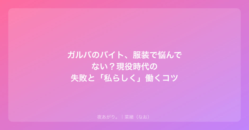新しいバイトを始めるときって、期待半分、不安半分だよね。特にガールズバーみたいに「見られる仕事」だと、「どんな服を着ていけばいいんだろう」「私、浮いちゃわないかな」って、クローゼットの前で立ち止まっちゃう気持ち、私もよくわかります。
