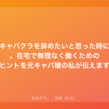 私は今28歳で、27歳のときにキャバクラを卒業しました。周りには30歳前後で「もう限界かも」と漏らしていたお姉さんたちがたくさんいたから、あなたのその「辞めたい」っていう気持ち、決して甘えじゃないってよくわかります。