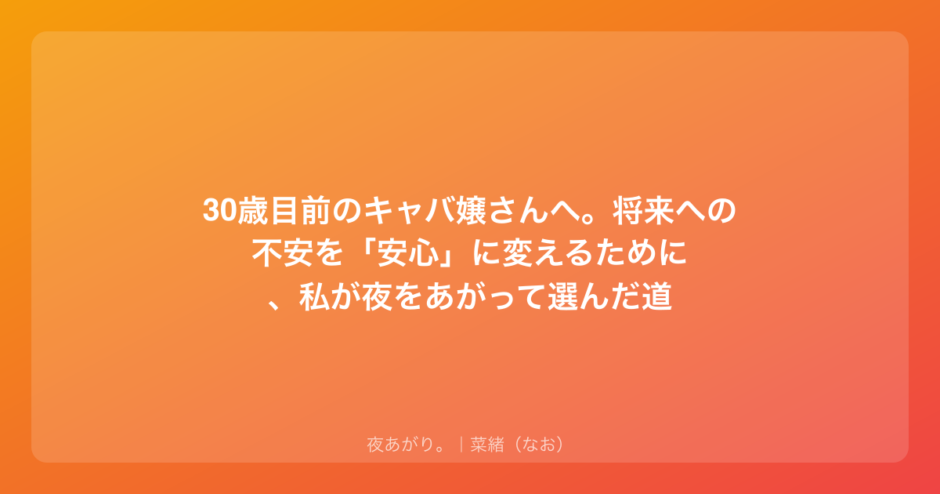 特に30歳という数字が近づいてくると、その不安は急にリアリティを持って襲ってきますよね。20代の頃は「まだ若いし、なんとかなる」って笑い飛ばせていたことも、周りの友達が結婚したり、昼職でキャリアを積んだりしているのを見ると、自分だけが取り残されているような、得体の知れない焦りを感じてしまう。