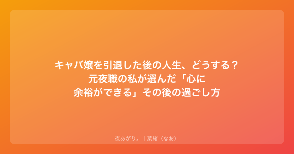 もし今、「キャバ嬢を引退したいけど、その後のことが怖くて踏み出せない」って思っているなら、ちょっとだけ私の話を聞いてほしい。私も、と同じ場所で立ち止まっていた一人だから。