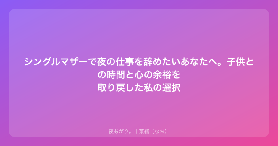 今日は、そんな風に「夜の仕事を辞めたい」と願うあなたが、どうすれば少しだけ肩の荷を降ろして、子供と一緒に笑える時間を増やせるか。私の経験と、私の周りのシングルマザーたちが選んだ道について、ゆっくりお話しさせてくださいね。