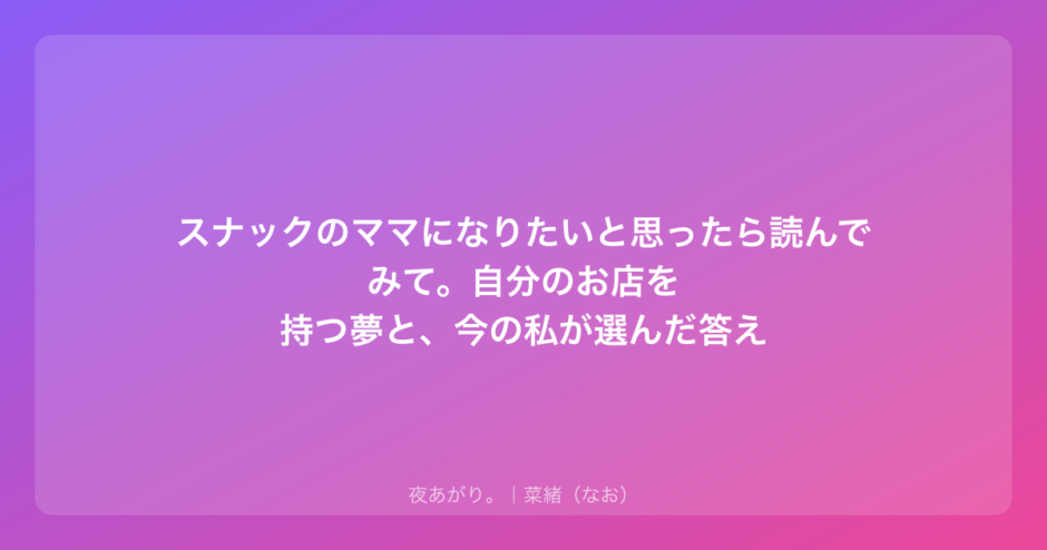 夜の世界で長く働いていると、一度は「いつかスナックのママになりたいな」って思ったこと、ないかな?