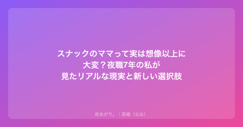 スナックのママって実は想像以上に大変?夜職7年の私が見たリアルな現実と新しい選択肢