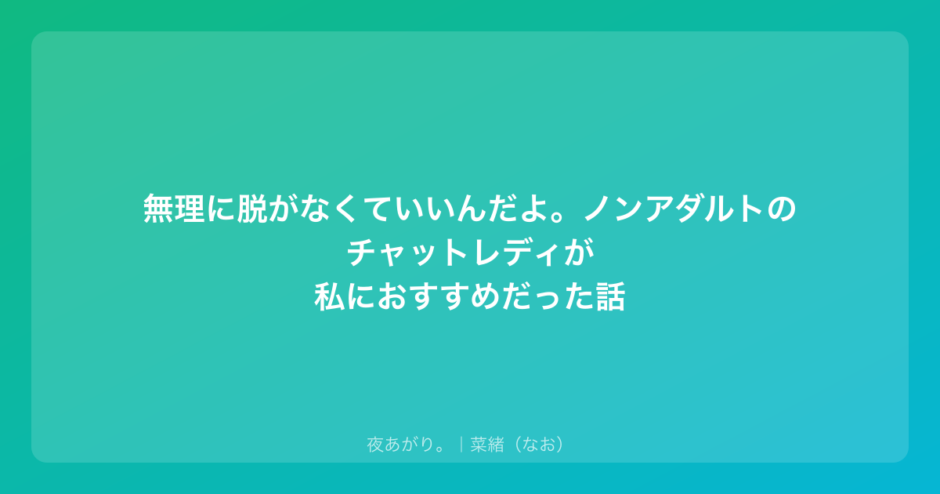 私が「ノンアダルト」のチャットレディを選んだ、ちょっとしたきっかけ