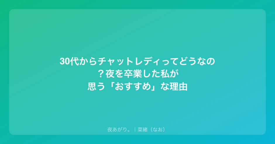 今日は、私が夜職からチャットレディに移行して、どんな風に生活が変わったのか。そして、なぜ30代の女性にこそチャットレディがおすすめなのか、等身大の言葉でお話ししてみようと思います。