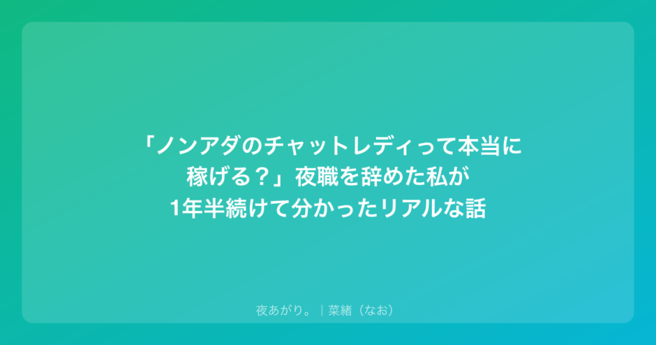 正直に言うと、最初は「ノンアダで稼げるなんて嘘じゃないの?」って疑ってた。だって、夜の世界では「脱いでなんぼ」「お酒を飲んでなんぼ」みたいな価値観が当たり前だったから。でも、実際に足を踏み出してみたら、そこには夜の店とは全く違う、でも確かな「穏やかな稼ぎ方」があったんだよね。