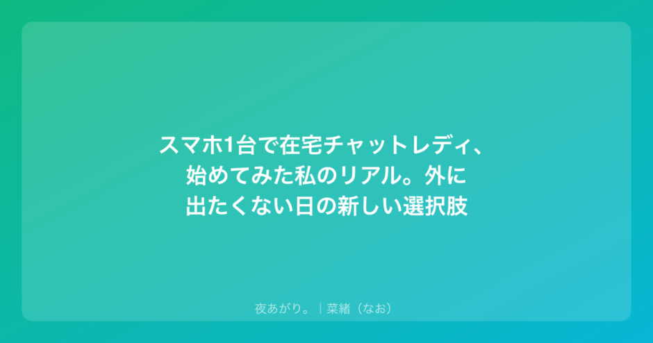 昔の私みたいに「もう限界かも」って思っているなら、スマホで完結するこの働き方が、あなたの心を少しだけ軽くしてくれるかもしれない。