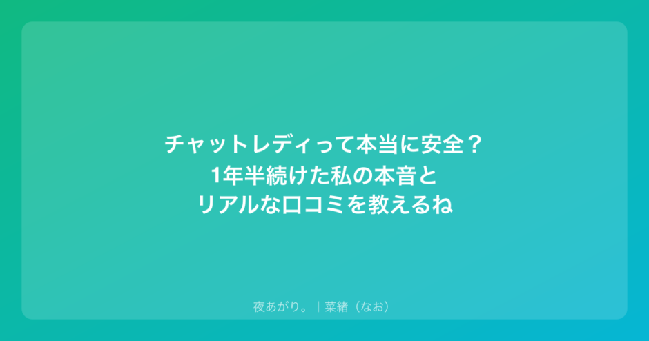 もし今、あなたが「やってみたいけど怖いな」って迷っているなら、それはあなたが自分自身をちゃんと大切にしようとしている証拠。無理に「安全だから大丈夫!」なんて言うつもりはないけど、1年半この仕事を続けてきた私の経験が、少しでもあなたの判断材料になったらいいな。