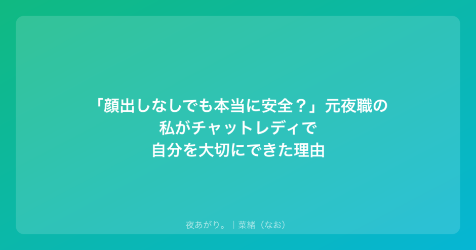 もし今、あなたが「水商売、辞めたいって思ったことある?」って思いながらも、次の一歩が踏み出せずにいるなら。そして「チャットレディって、顔出しなしでも本当に安全に働けるの?」って疑っているなら、少しだけ私の経験を聞いてほしいな。
