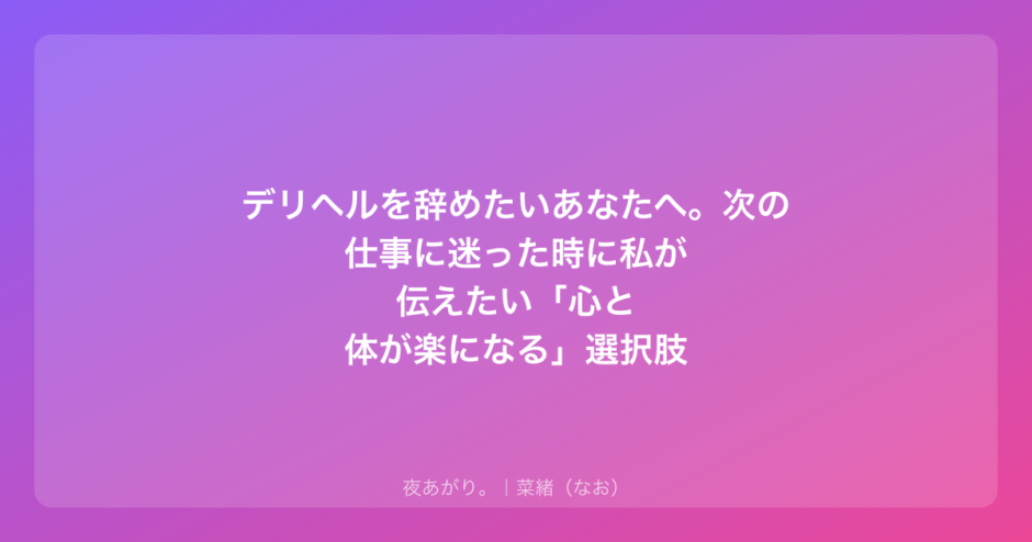 「え、また夜職っぽいの?」って思うかもしれないけど、ちょっとだけ聞いてほしいな。