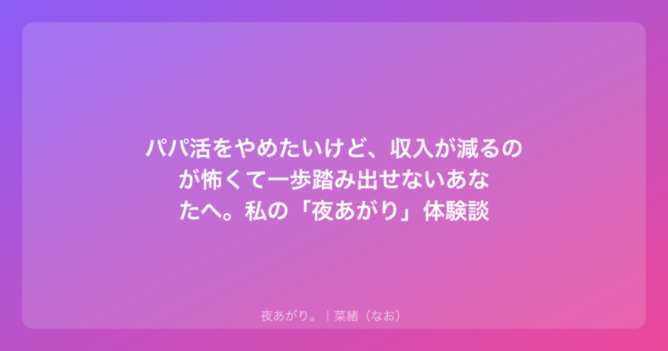 「もう、パパ活やめたいな」