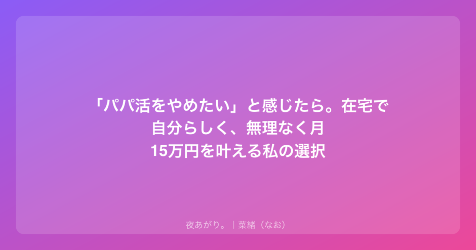 「パパ活をやめたい」と感じたら。在宅で自分らしく、無理なく月15万円を叶える私の選択