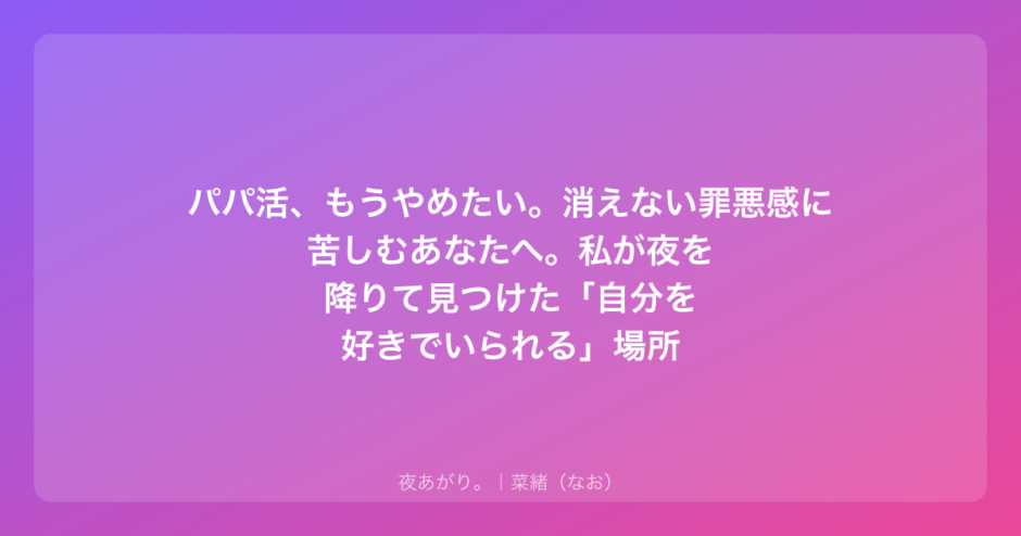 もしあなたが今、そんなふうに「パパ活をやめたい」という気持ちと、自分を責めるような「罪悪感」に挟まれて苦しんでいるなら。まずは、深呼吸してほしいなって思います。