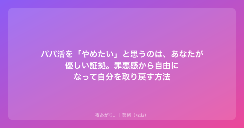 「パパ活、もうやめたい」その罪悪感を一人で抱え込んでない?