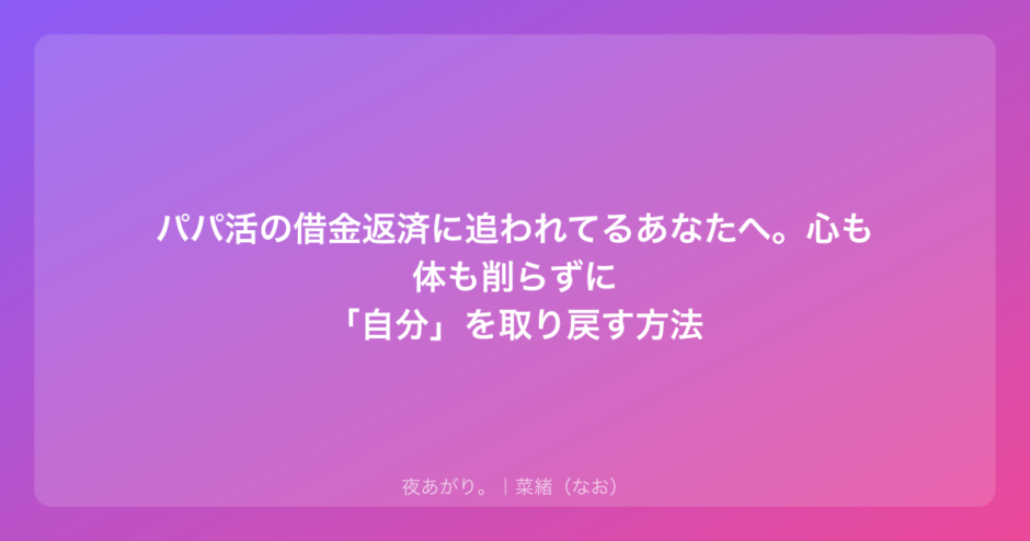 もし、今のあなたがパパ活での借金返済に追い詰められて、朝起きるのが辛いって感じているなら。