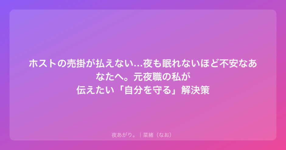 ホストの売掛が払えない。その現実は、確かに重くて苦しいものです。