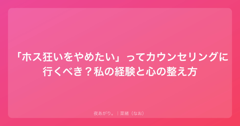 「ホス狂いをやめたい」って思って、カウンセリングを探したり、この記事に辿り着いたりしたあなたは、もう十分頑張ってる。自分を救おうとしているその勇気を、どうか大切にしてあげてね。