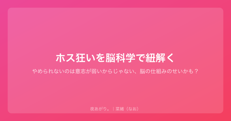 「ホス狂い」という言葉がありますが、これって実は脳の中ですごいことが起きている状態なんです。