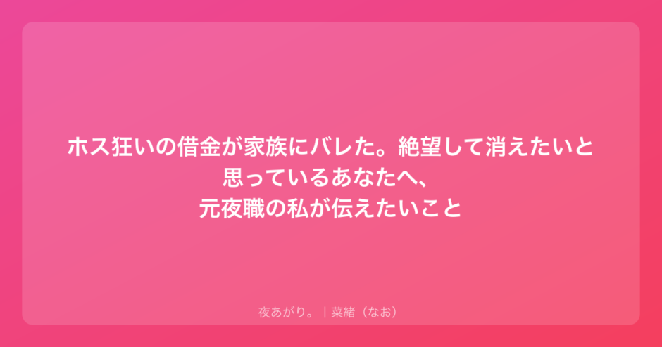 ホス狂いの借金が家族にバレた。絶望して消えたいと思っているあなたへ、元夜職の私が伝えたいこと