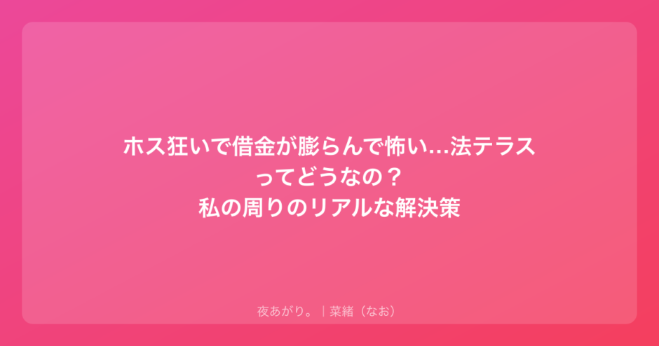 借金のこと、ホストのこと、将来のこと。不安で胸がいっぱいかもしれないけれど、あなたは一人じゃないよ。
