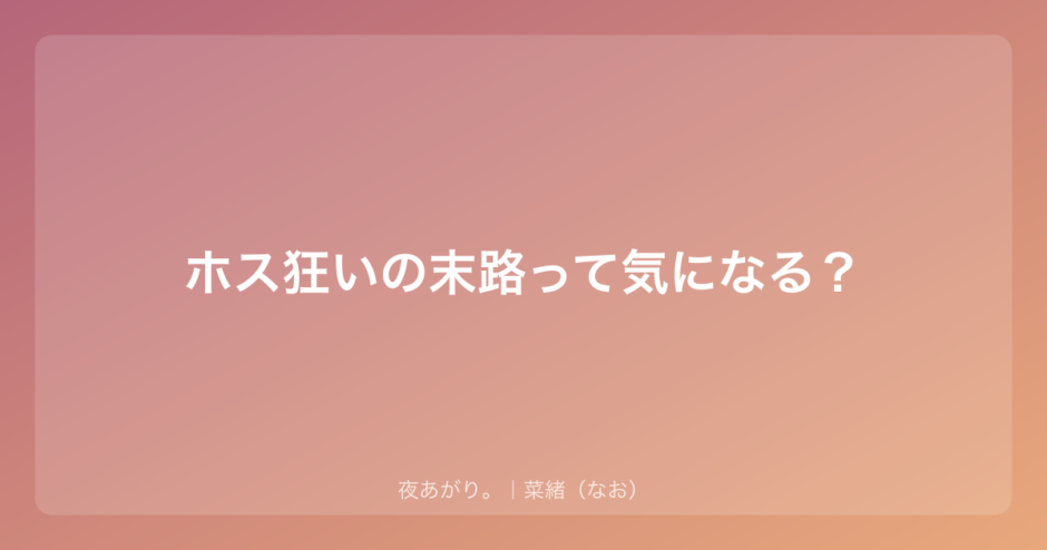 「ホス狂い 末路」って検索してるってことは、たぶんどこかで「このままじゃまずいかも」って感じてるんだと思う。