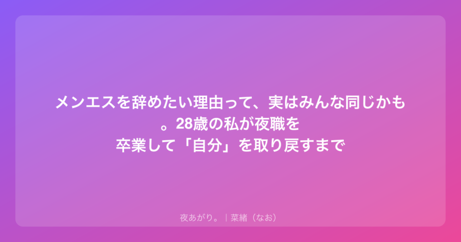 そう思うことって、一度や二度じゃないよね。私も20代のほとんどを夜の世界で過ごしてきたから、その感覚はすごくよく分かるんだ。
