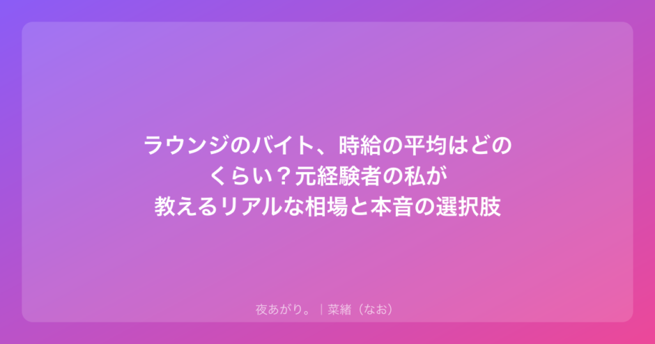 これからラウンジのバイトを考えているなら、まずは時給の平均や、その数字の裏側にある「リアル」を包み隠さずお話ししようと思う。