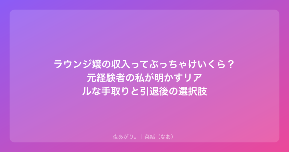 今日は、元ラウンジ嬢として7年夜の世界にいた私が、誰も教えてくれない「本当の収入」の話をしようと思います。夢を壊すかもしれないけれど、現実を知ることは、自分を自由にするための第一歩だから。
