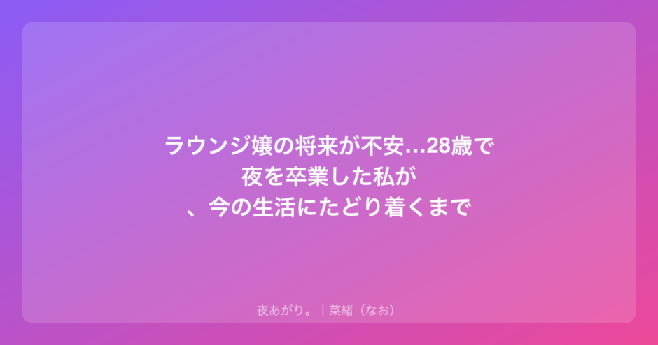 私も28歳までラウンジにいたから、その気持ちは痛いほどよく分かるよ。でもね、先に言っておきたいのは、あなたが今まで頑張ってきたことは、決して無駄じゃないってこと。まずは、そこを自分でも認めてあげてほしいんだ。