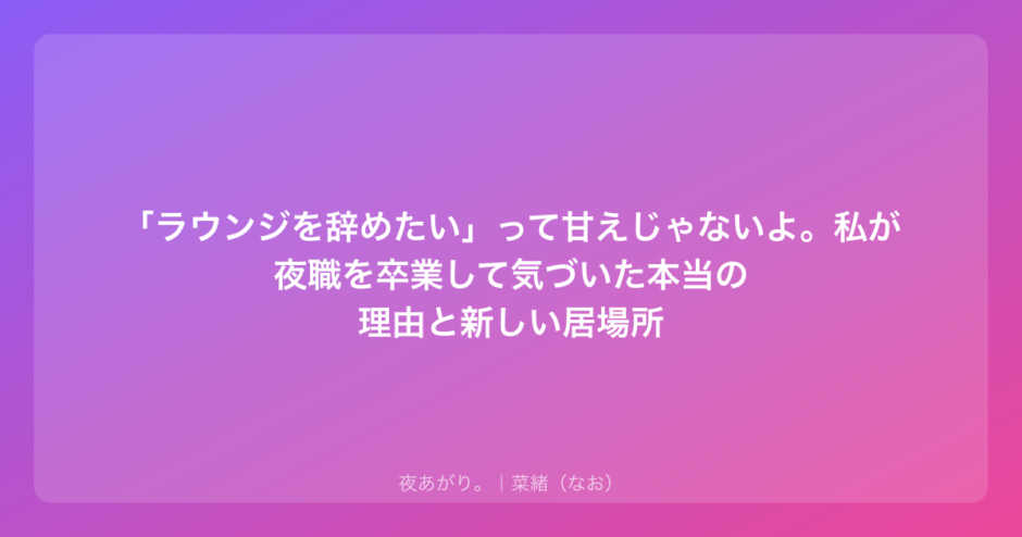 「ラウンジを辞めたい」って甘えじゃないよ。私が夜職を卒業して気づいた本当の理由と新しい居場所