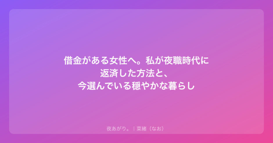 借金がある女性へ。私が夜職時代に返済した方法と、今選んでいる穏やかな暮らし