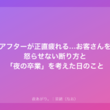 あなたが今「きつい」と感じているのは、あなたがそれだけ真面目にお客さんと向き合って、相手を喜ばせようと必死に頑張ってきたからなんだよ。適当に流せる人なら、そこまでしんどくはならないはず。