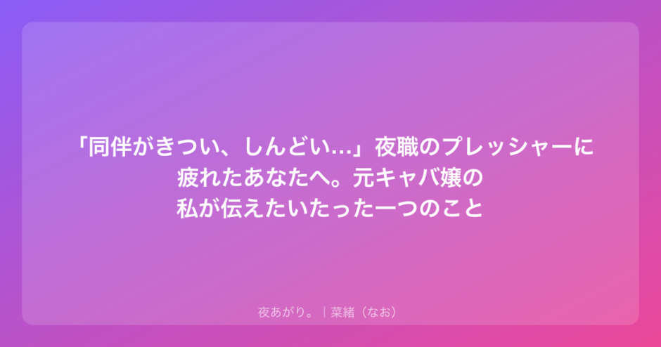 もし今、あなたが「同伴、しんどいな。もう行きたくないな」って思っているなら、まずはその気持ちを、自分で抱きしめてあげてほしいなって思います。