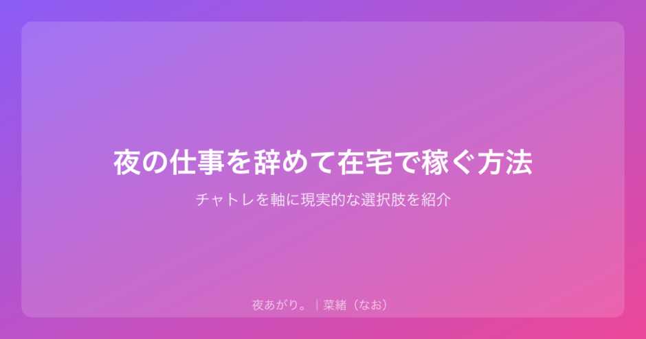 title: 夜の仕事を辞めて在宅で稼ぐ方法|チャトレを軸に現実的な選択肢を紹介