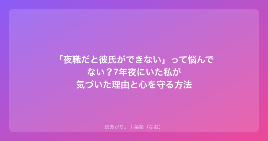 「夜職だから彼氏ができない」っていうのは、ある意味では事実かもしれないけれど、それがあなたの人生の全てじゃない。