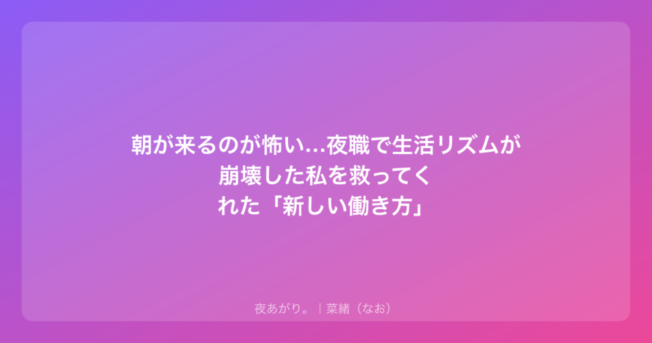 朝が来るのが怖い…夜職で生活リズムが崩壊した私を救ってくれた「新しい働き方」