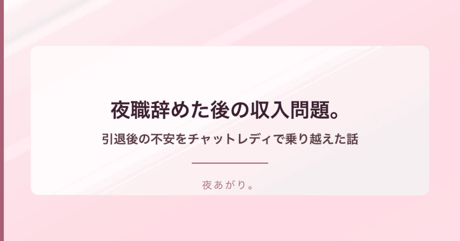 お店を辞めるって決めた時は、やっと自由になれるってすごく嬉しかった。でも、その喜びも束の間で、すぐに現実が押し寄せてきた。「来月からどうやって生きていこう」って。夜職の世界にいると、どうしても金銭感覚が麻痺しちゃうし、周りも稼いでる子ばかりだから、いざ自分が稼げなくなるって想像すると本当に怖かった。私も例外じゃなくて、辞めたら途端に収入が途絶えるんじゃないかって、毎日そのことばかり考えてたよ。