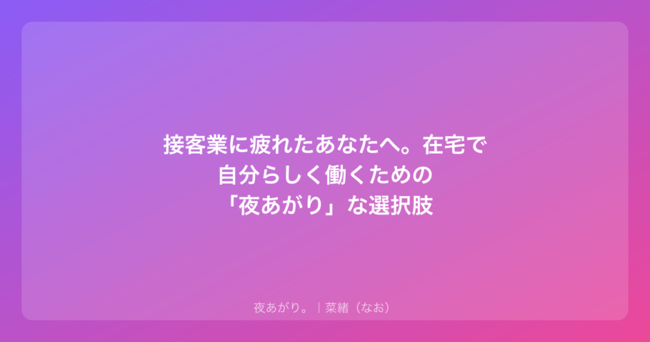 接客業に疲れたあなたへ。在宅で自分らしく働くための「夜あがり」な選択肢
