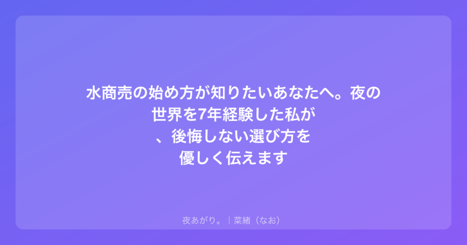 もし今、あなたがそんな風に悩んでいるなら、ちょっとだけ私の話を聞いてほしい。私はガルバから始まって、キャバクラ、ラウンジと、トータルで7年くらい夜の世界にいた。今はそこを離れて、別の形で自分のペースを守りながら生活してるけど、あの頃の経験があるからこそ伝えられることがあると思ってる。