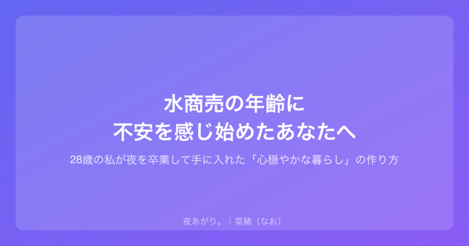 28歳で夜を上がった私のリアル。昼職への転職と、挫折しそうになったときに出会った「別の選択肢」