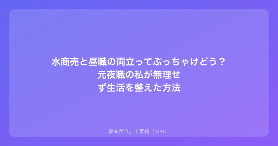 水商売と昼職の両立ってぶっちゃけどう?元夜職の私が無理せず生活を整えた方法