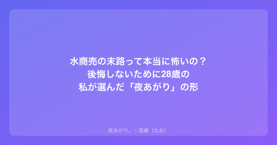 夜の仕事を辞めたからといって、輝かしいキャリアを捨てたことにはならない。むしろ、自分の心と体を守るための、前向きな卒業だと私は思ってる。