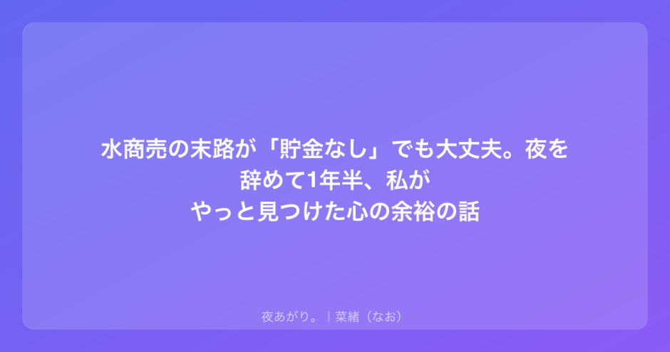 夜を辞めるために必要なのは、貯金よりも「逃げ道」だった