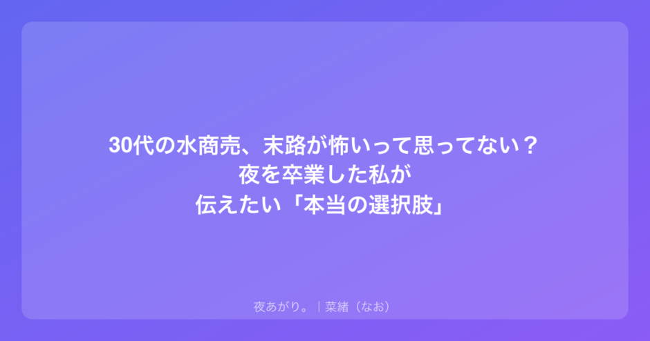 「水商売の末路」は、あなたが決めるもの。他人が作った残酷な言葉に、あなたの未来を預けちゃだめだよ。