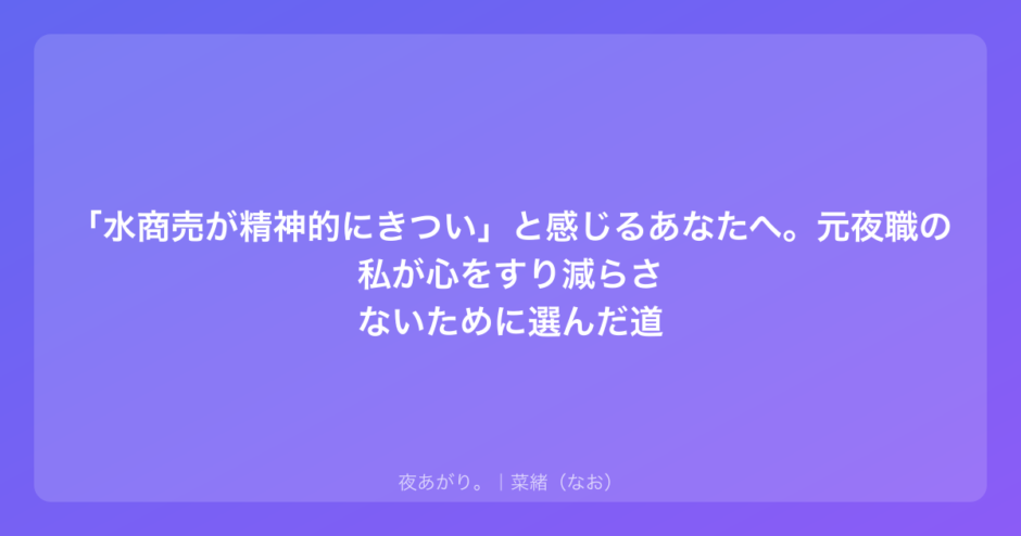 「水商売が精神的にきつい」…その感覚、全然甘えじゃないよ