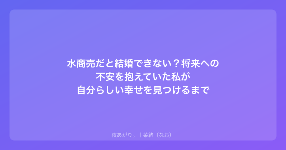 「夜職の私、このまま結婚できないかも」って夜中にふと考えちゃうことない?